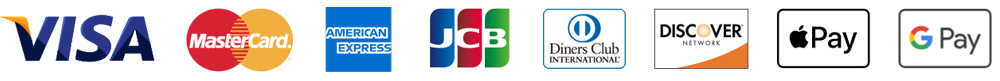 クレジットカードは、「VISA」「MasterCard」「American Express」「JCB」「ダイナース」「ディスカバー」「Apple Pay」「Google Pay」をご利用いただけます。(「Apple pay」「Google pay」の決済フォームは対応している端末を利用されていて、かつ、有効なカードが登録されている場合のみ表示されます。)